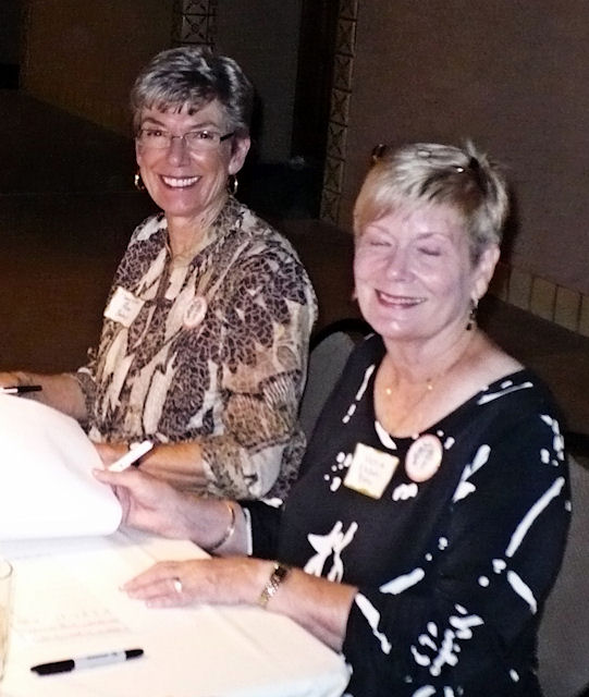 Mary Ellen (Ross) Baump & Vickie (Ekdahl) Bisho at Friday Night Reception Desk |